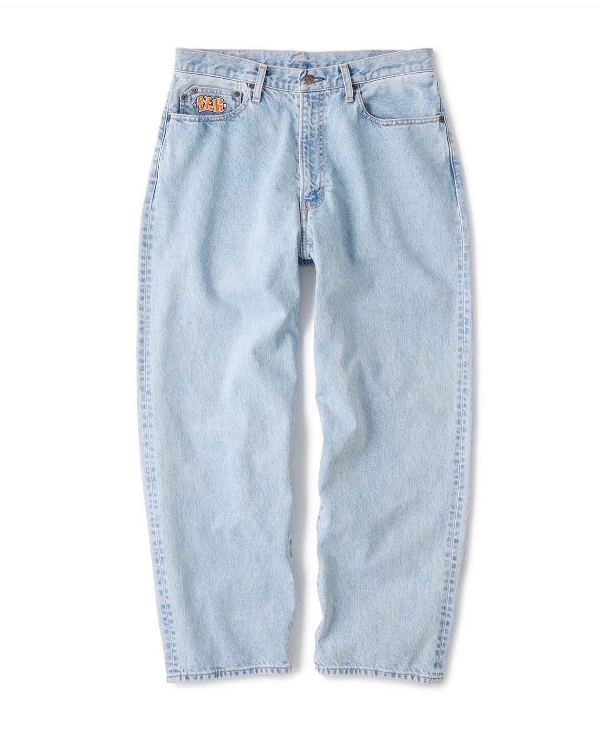 バギーシルエットの5ポケットデニムパンツ。14ozのデニムを使用。 ジッパーフライ。コインポケットに刺繍。ポケットスレキにプリント。オリジナルネオバーボタン。