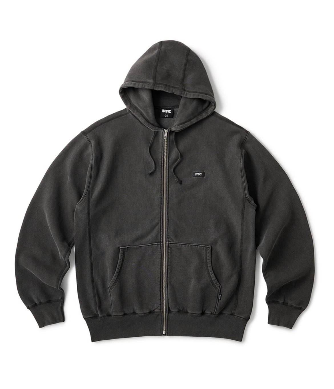 FTC "PIGMENT DYED BOX LOGO ZIP UP HOODY" BLK | ROOM808