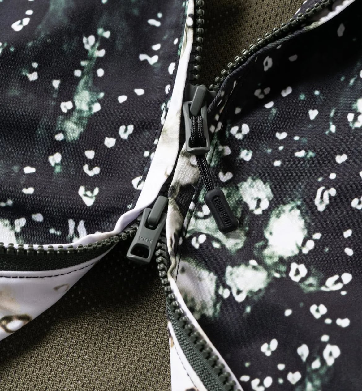 写真家・水谷太郎氏の作品を全面に昇華転写プリントしたスタンドカラーのトラックジャケット。